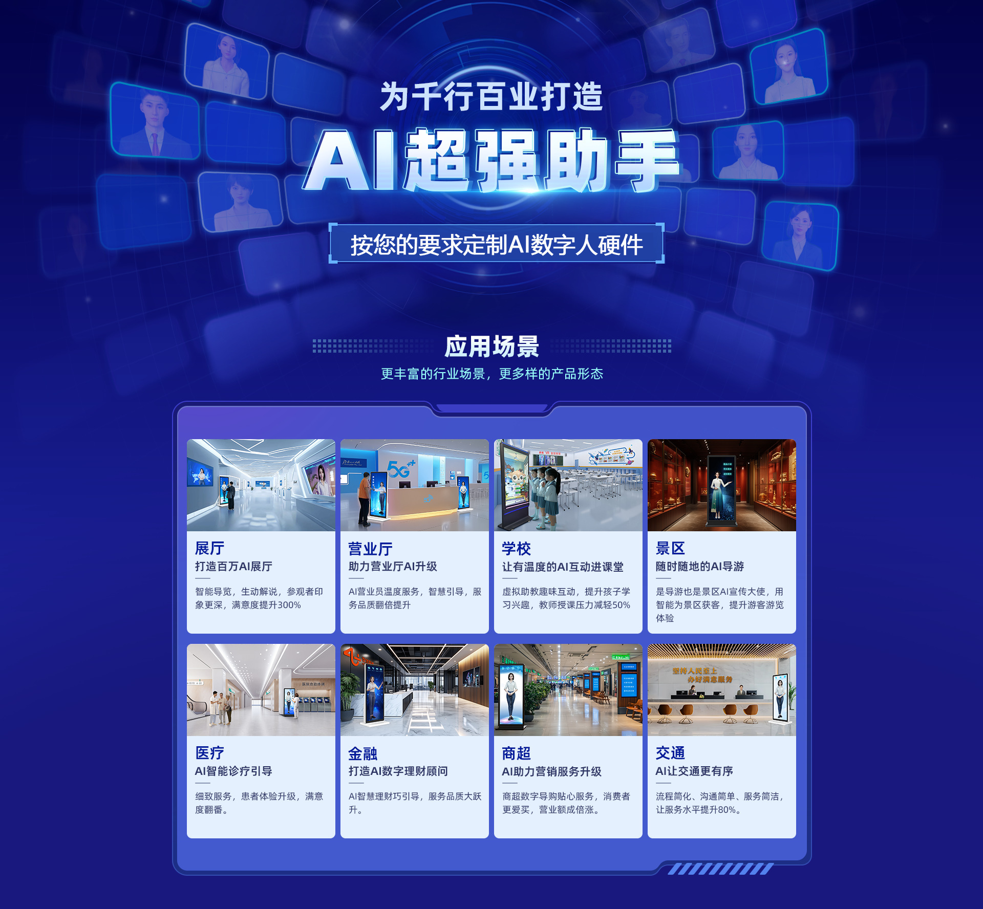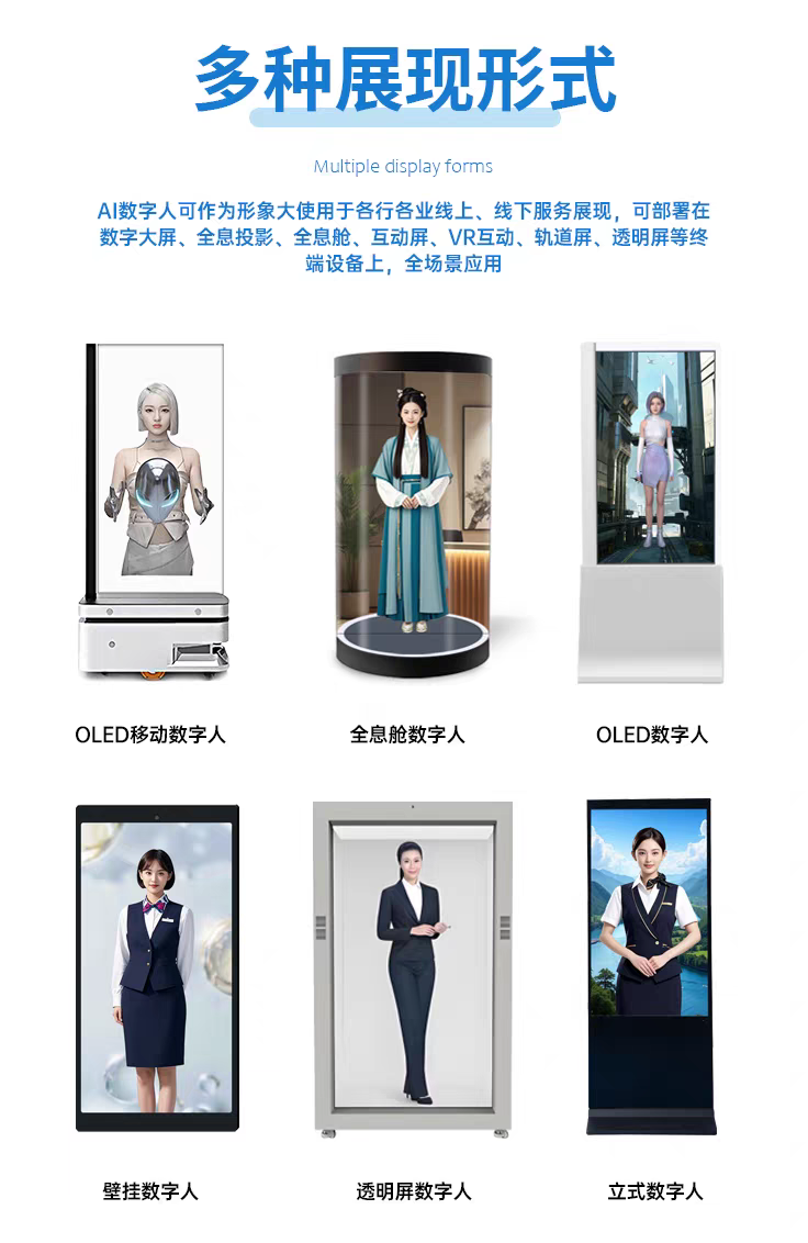 运用先进数字人技术,数字人一体机可生成高度逼真数字人形象,外貌、表情、动作栩栩如生,语音合成自然流畅,仿佛与真人面对面交流。结合自然语言处理与语音识别技术,数字人能精准理解用户指令,实现多轮对话,给予准确回答与专业建议。支持手势识别、触摸互动等多模态交互,满足不同场景与用户需求,带来便捷、自然交互体验。